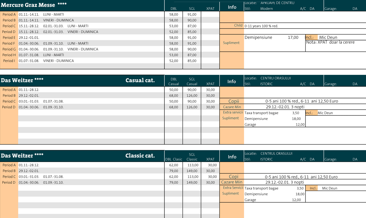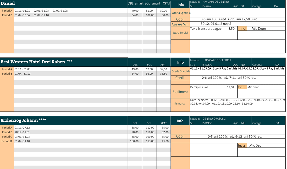Preturile hotelurilor pt 1.11.2008 - 31.10.2009 (
