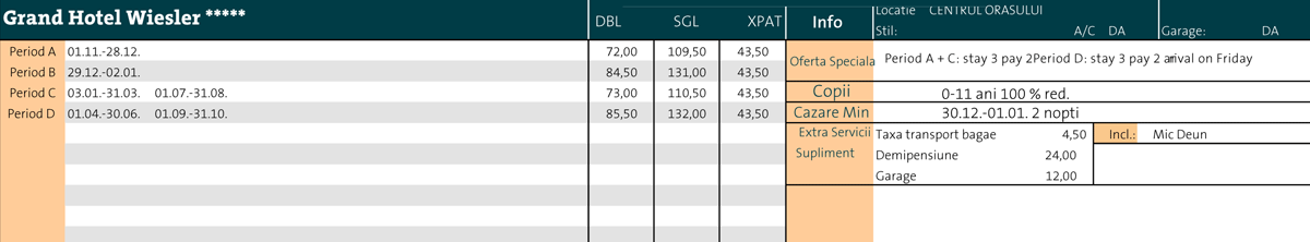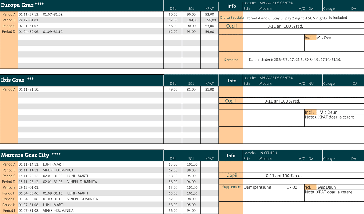 - Tarifele nu sunt valabile pentru participantii la congrese sau intalniri de afaceri