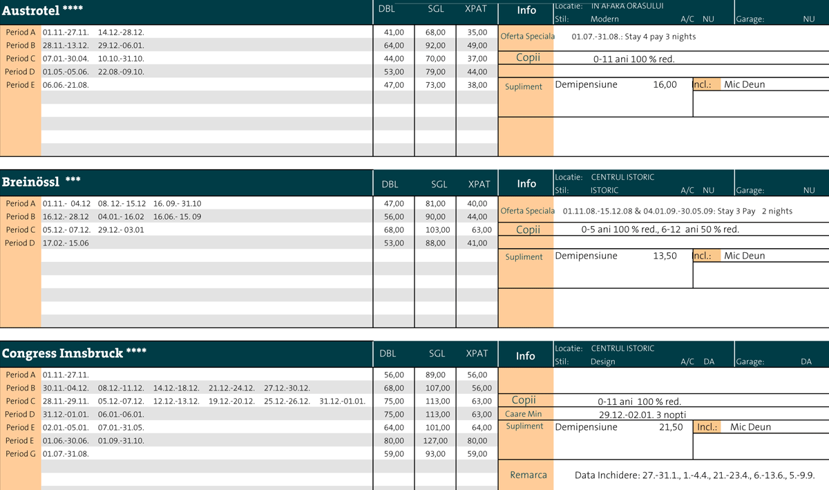 Plecari: oferta cazare hoteluri: 1.11.2008 - 31.10.2009