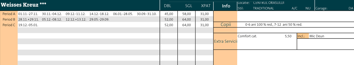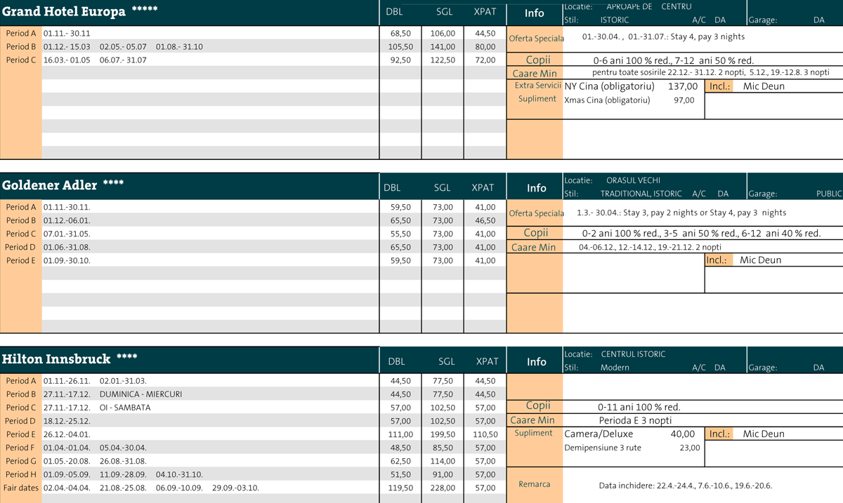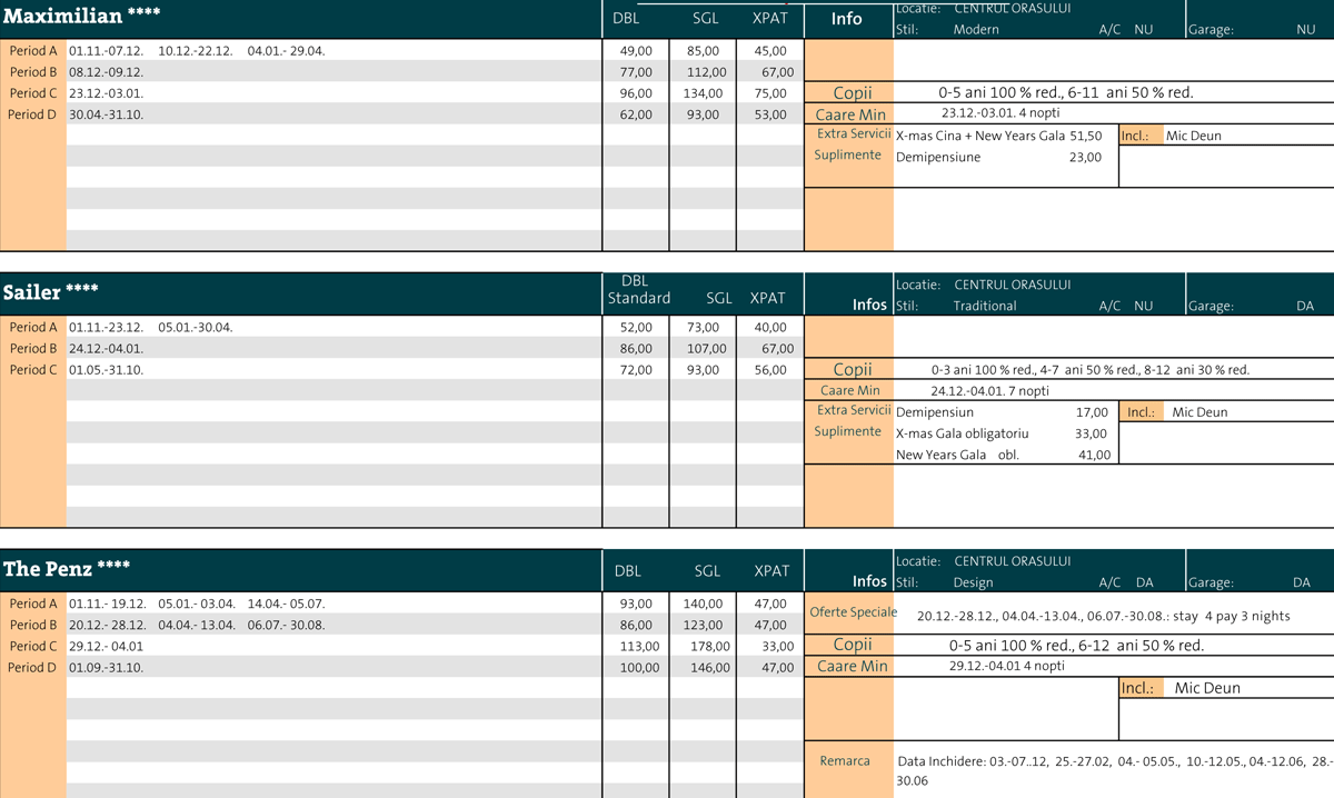 Preturile hotelurilor pt 1.11.2008 - 31.10.2009 (