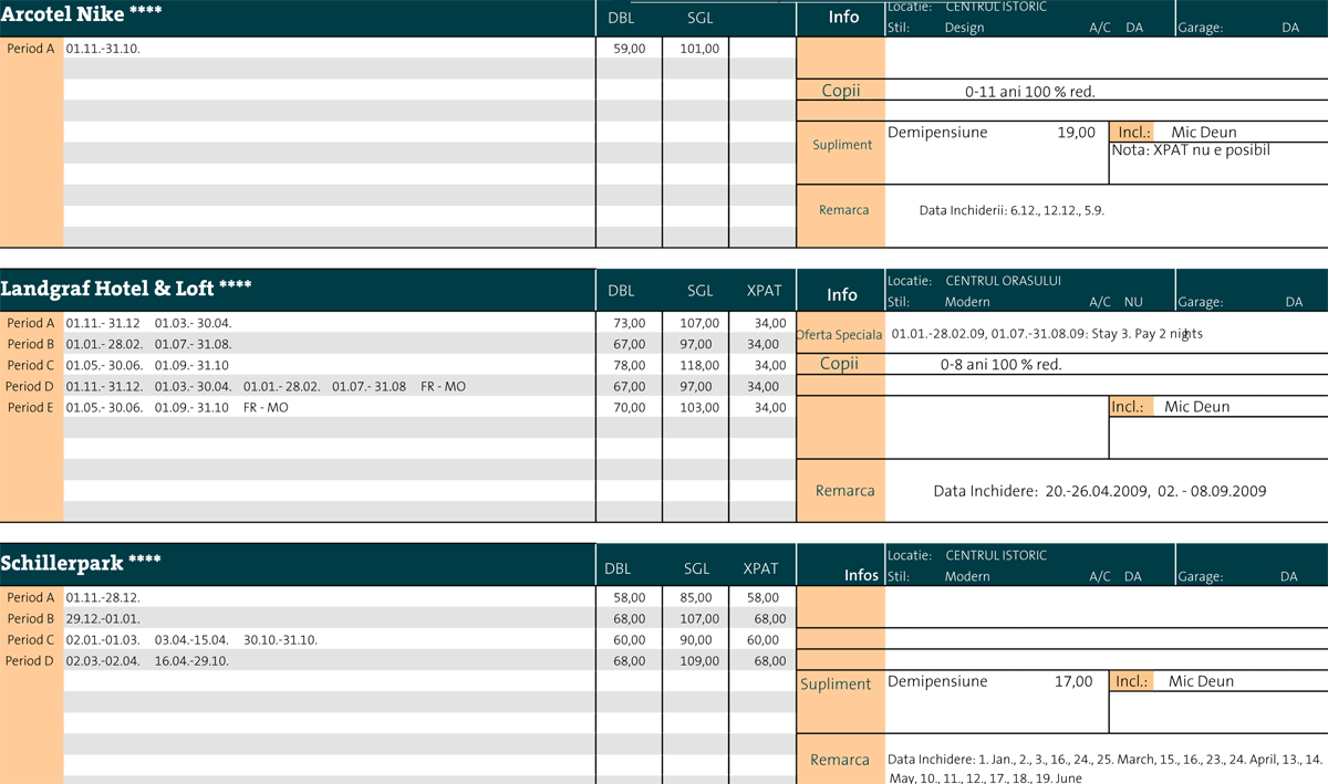 Preturile hotelurilor pt 1.11.2008 - 31.10.2009 (click pt. a mari oferta):