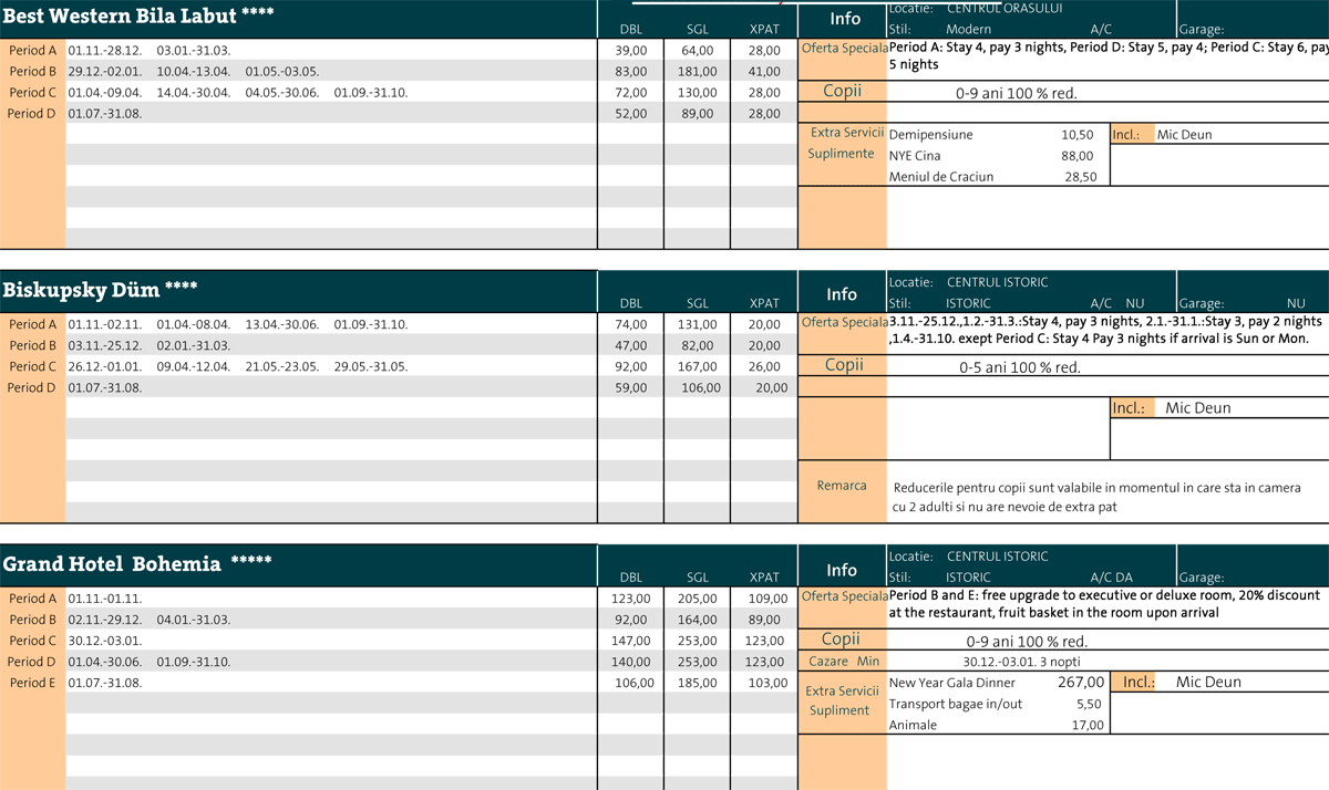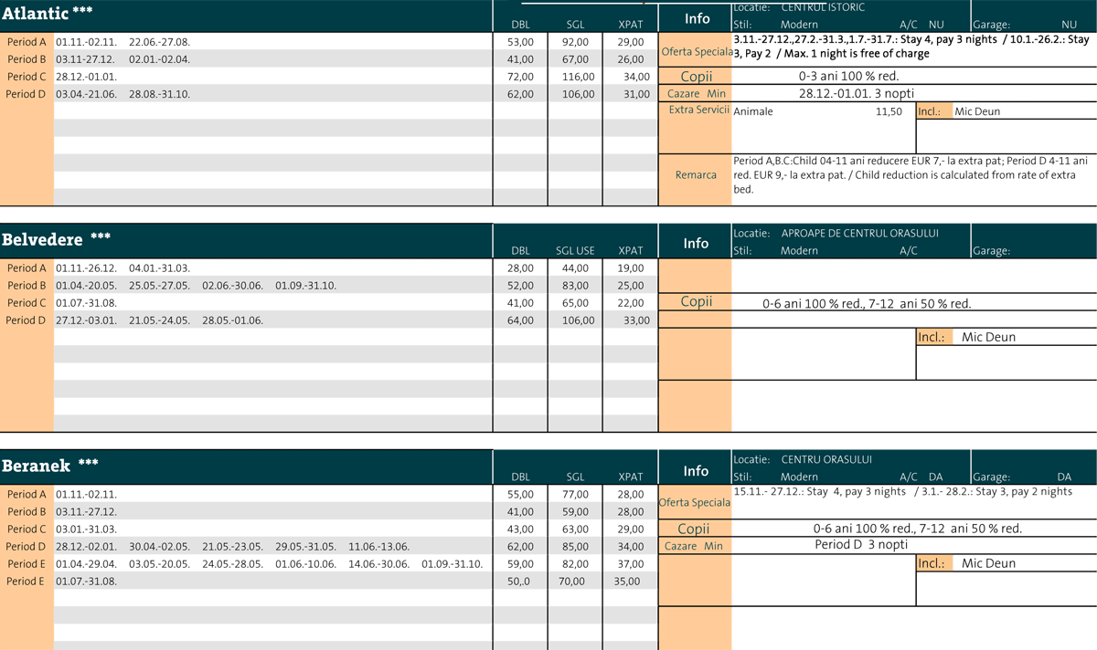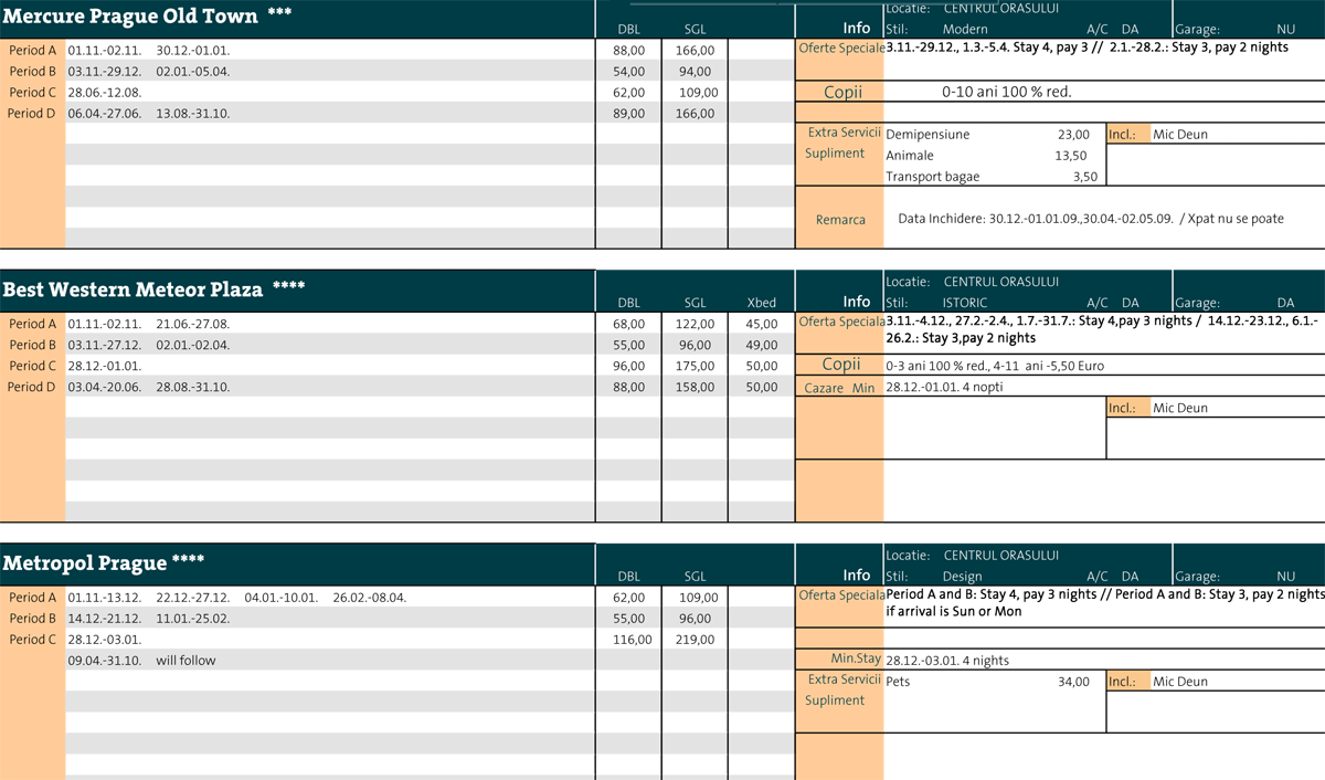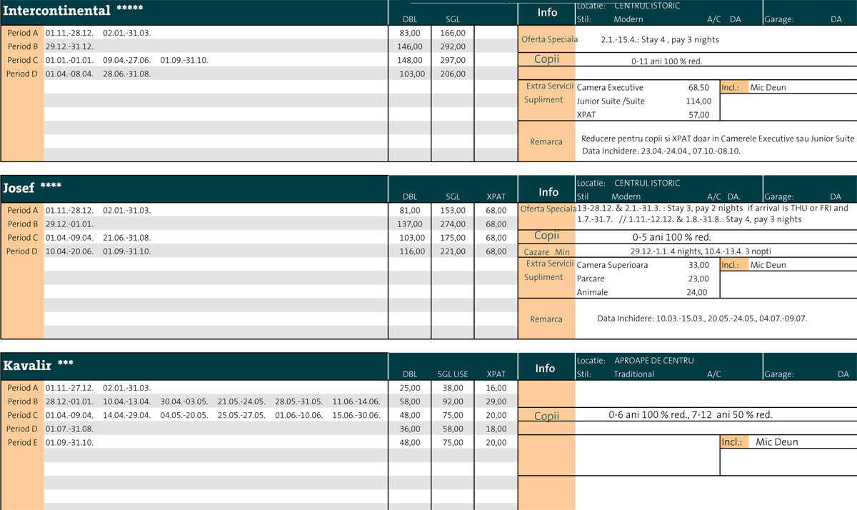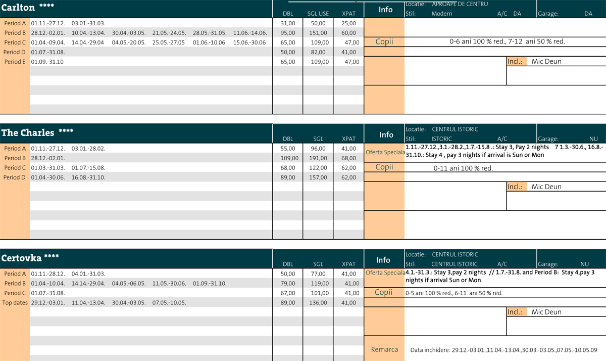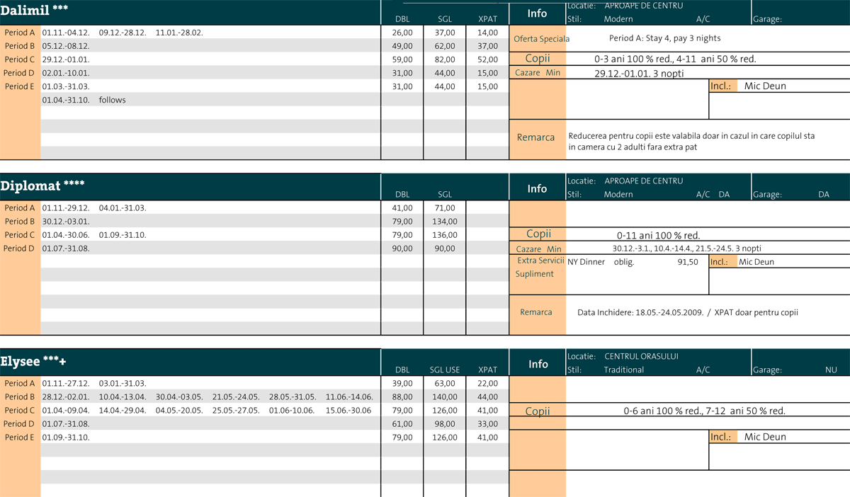 Preturile hotelurilor pt 1.11.2008 - 31.10.2009 (