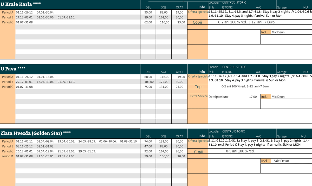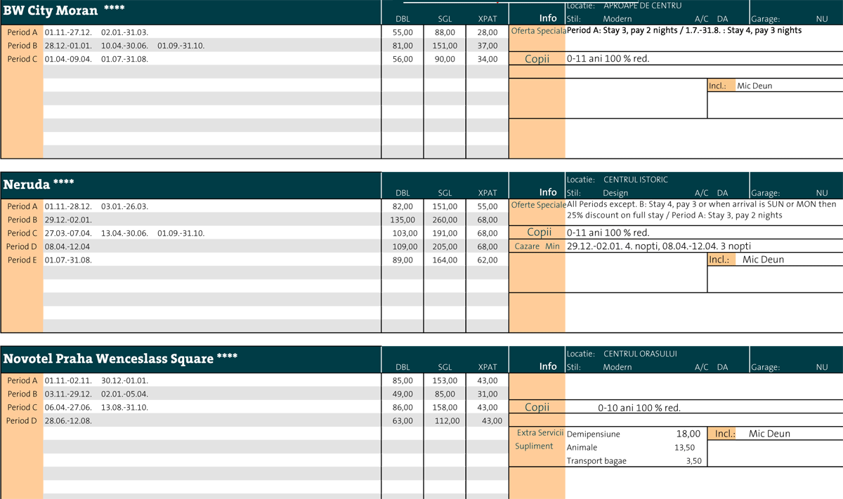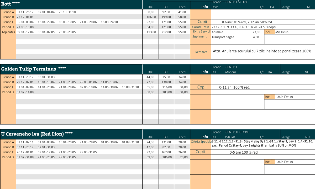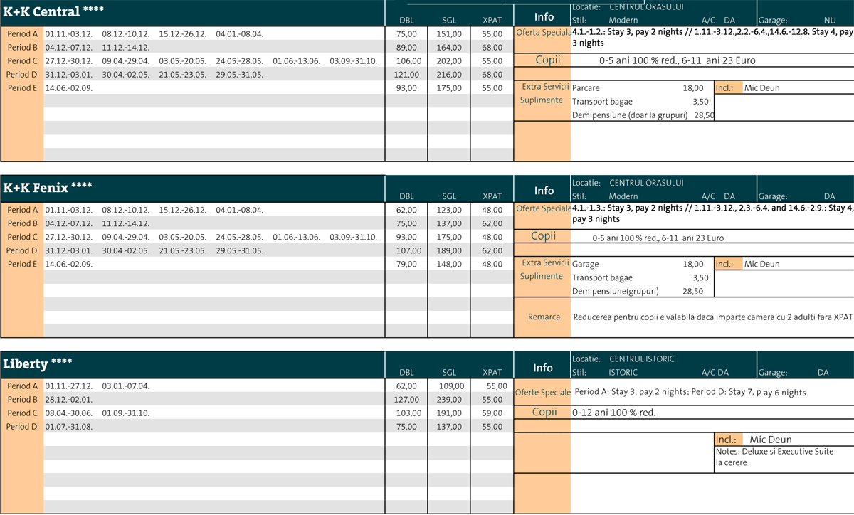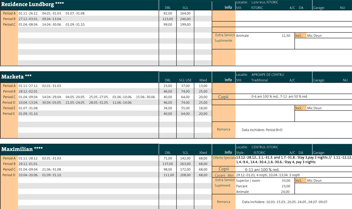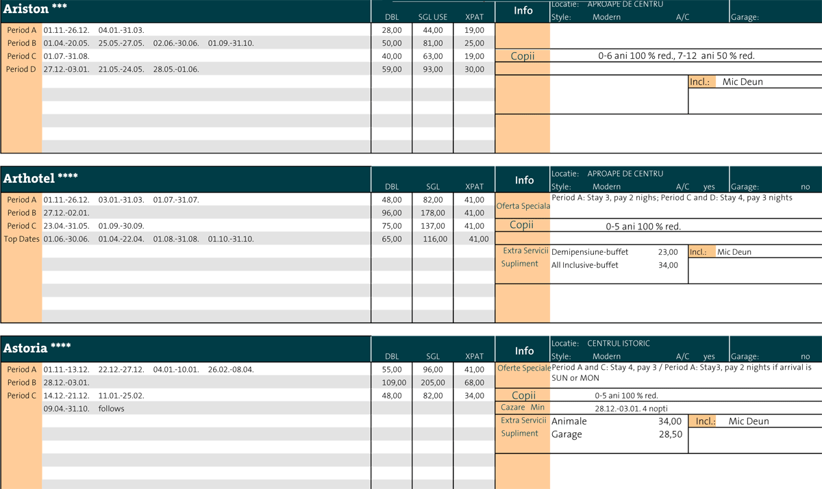 Preturile hotelurilor pt 1.11.2008 - 31.10.2009 (