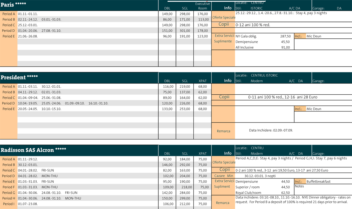- Tarifele nu sunt valabile pentru participantii la congrese sau intalniri de afaceri