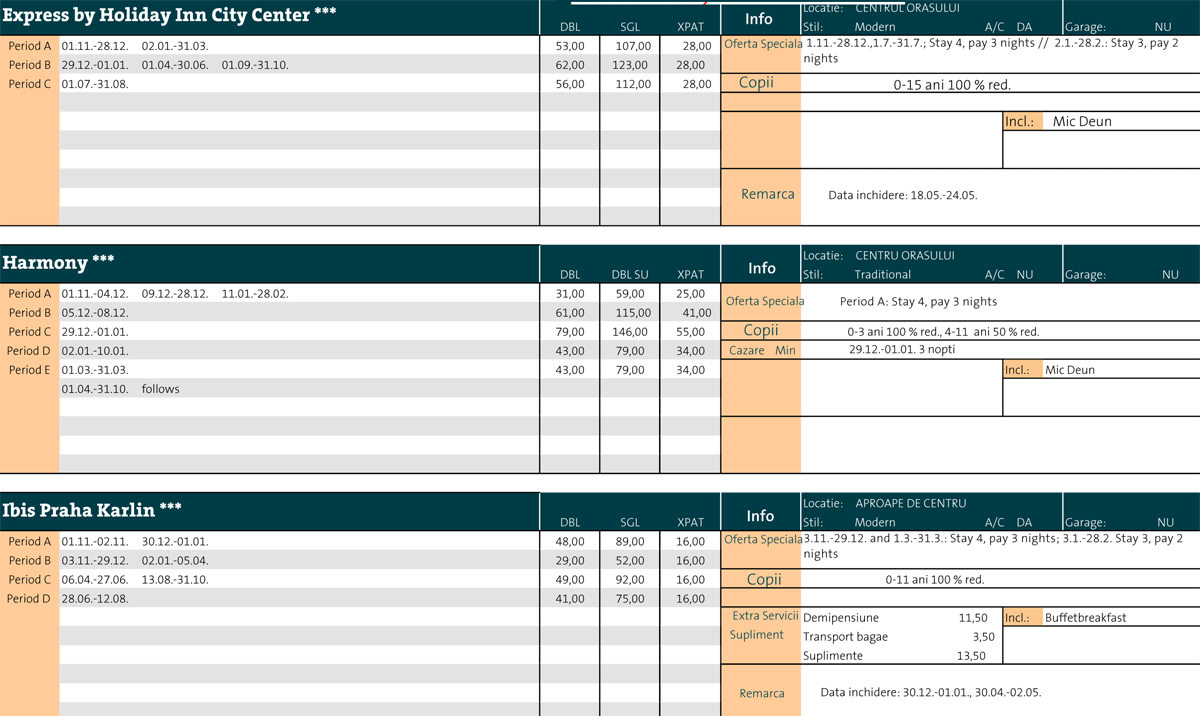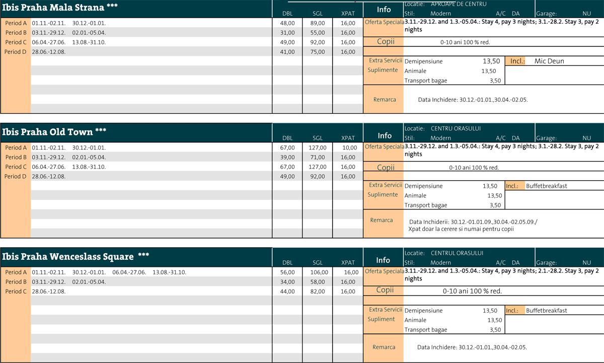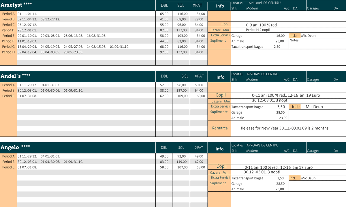 Plecari: oferta cazare hoteluri: 1.11.2008 - 31.10.2009